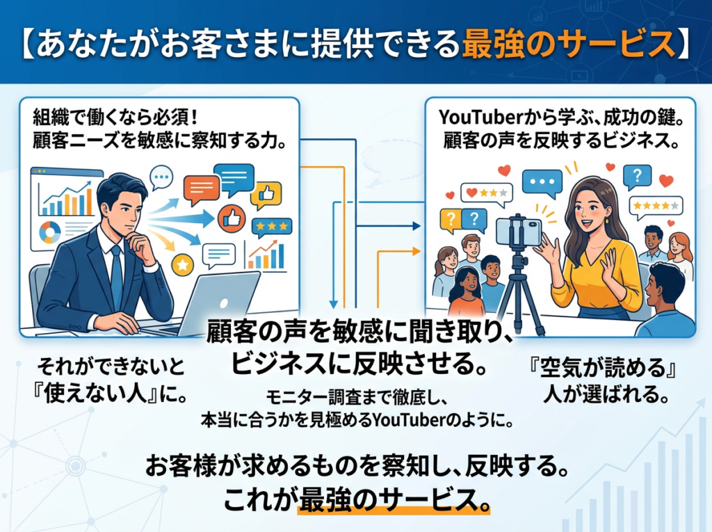 YouTuberやインフルエンサーのビジネスは、彼らがお客さまの声をダイレクトに聞くから成功しているのです。
